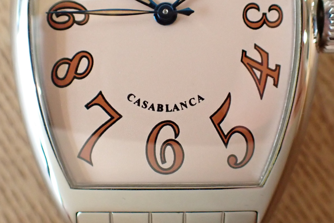 | 備考 | 初期カサブランカサハラ(緩いカーブでプリントされたブランドロゴ 細かなキラキラ文字盤)ケースサイズ約タテ45mm(ラグ含む)ヨコ32mm(リューズ含まず) |