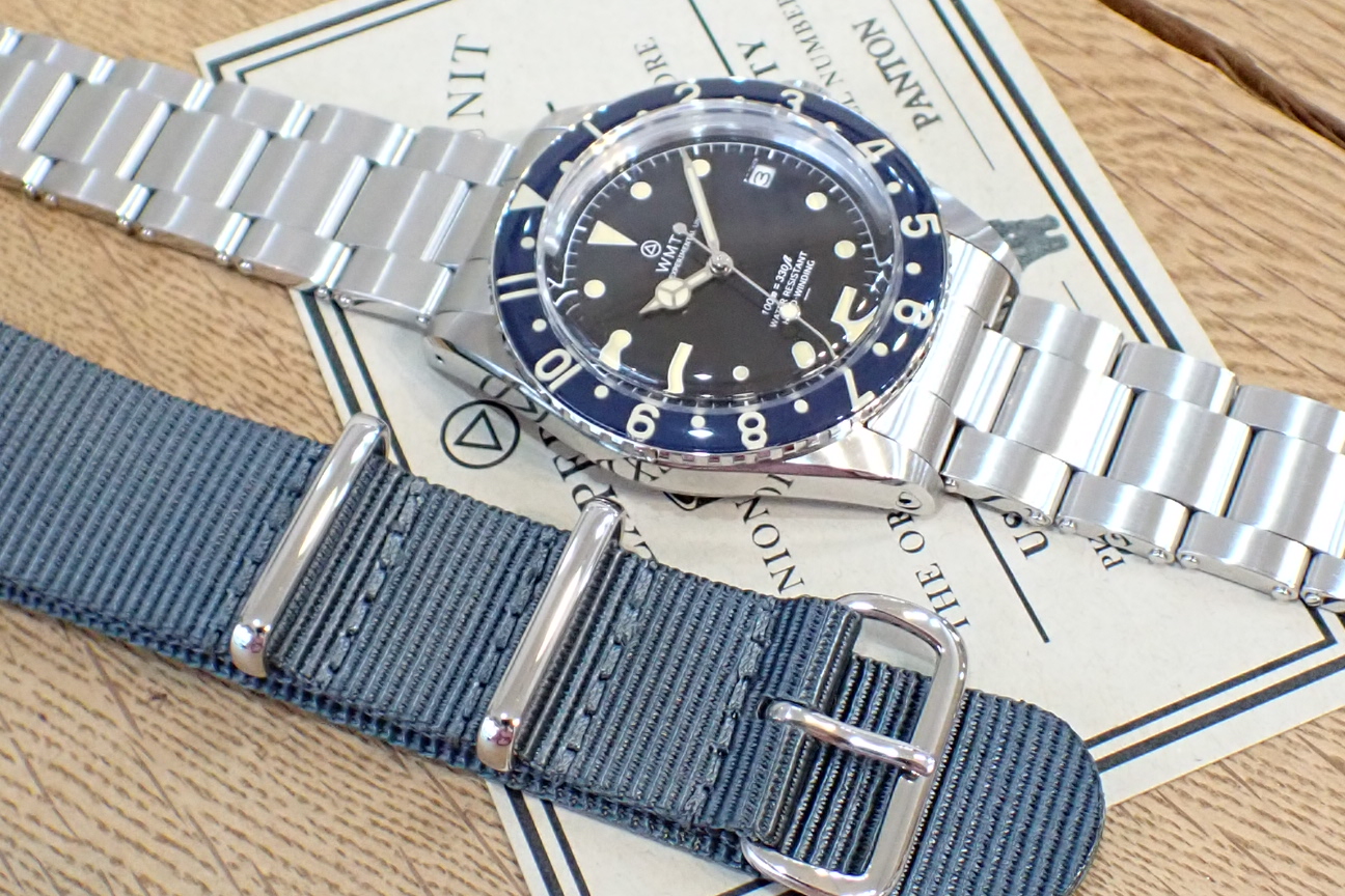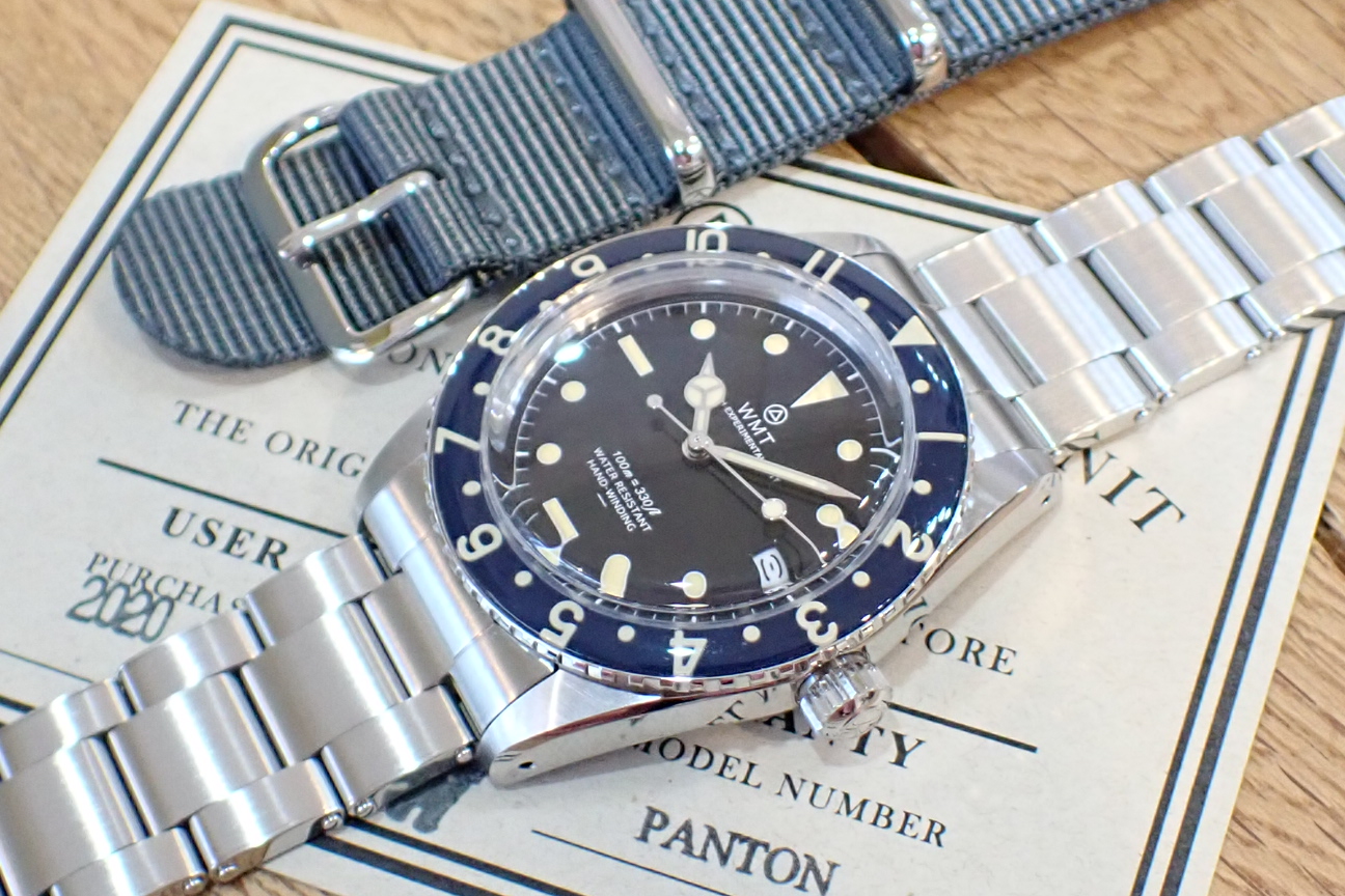 | 商品名 | WMT PANTON 青ベゼル アンダーライン文字盤 ナイロンストラップ付き |